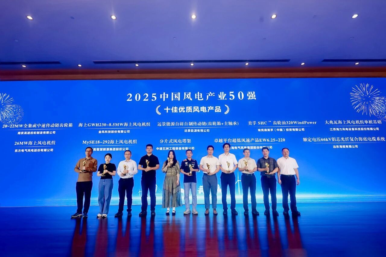 在大會主題論壇上,遠東海纜首席技術質量官周長安發表《堅持技術創新推動海上風電高質量發展-鋁芯海纜研發》專題演講,深度剖析鋁芯海纜在材料選型、結構設計、智能制造上的突破成果,引發全場熱議。值得關注的是,該66kV鋁芯光纖復合海底電纜系統憑借“輕量化””低成本”與“高可靠性”等優勢,成功斬獲“中國風電產業50強十佳優質風電產品獎”,彰顯行業對遠東海纜技術實力的高度認可。